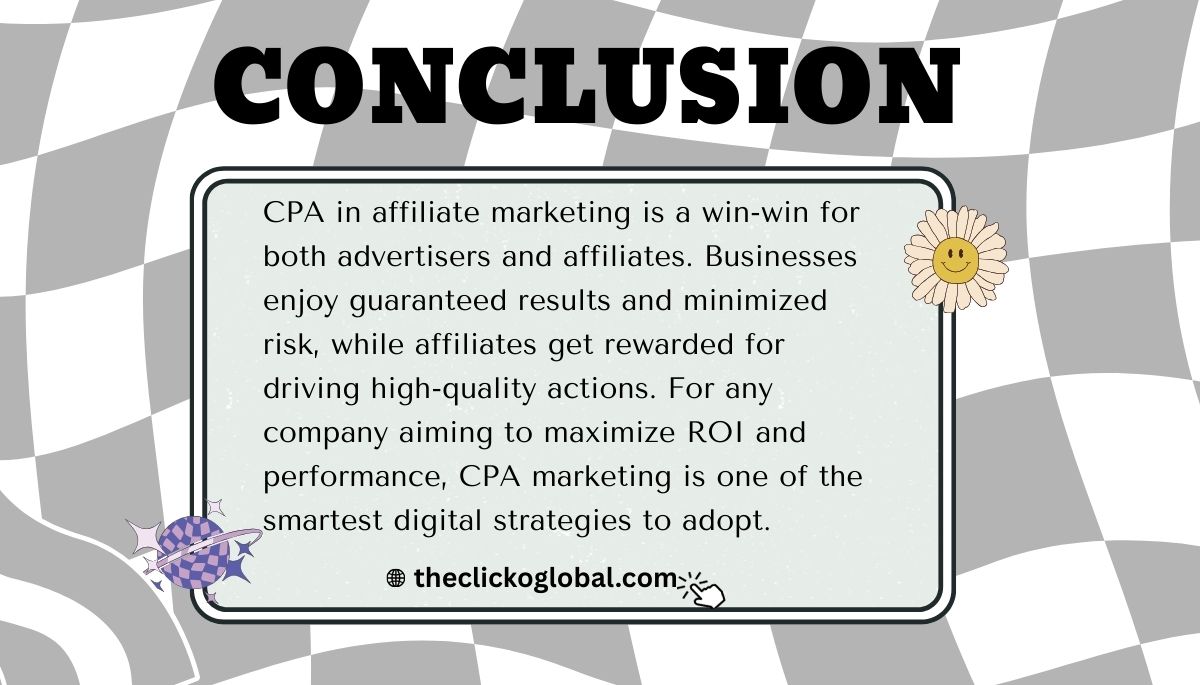 CPA in affiliate marketing is a win-win for both advertisers and affiliates. Businesses enjoy guaranteed results and minimized risk, while affiliates get rewarded for driving high-quality actions. For any company aiming to maximize ROI and performance, CPA marketing is one of the smartest digital strategies to adopt.